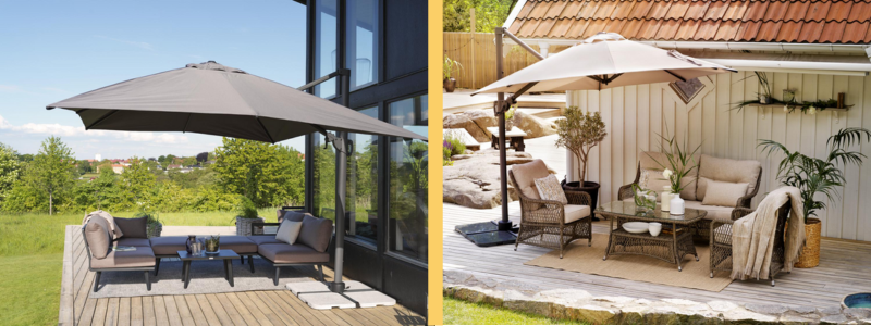 Laajasta valikoimasta löydät kaiken, mitä terassin sisustamiseen ja viimeistelyyn tulee. Esimerkiksi aurinkovarjot ovat yksi asia, jolla tuot paljon mukavuutta ulkotiloihisi, ja pääset tarpeen tullen suojaan paahtavalta auringolta. Pienempiä sisustusjuttuja, joilla teet terassistasi kutsuvamman, on esimerkiksi koristetyynyt ja viltit. Lämpöä ja fiilistä terassille tuot mm. upeilla ulkolyhdyillä. Viimeistele siis terassin, parvekkeen ja puutarhan sisustus itsellesi mieluisaksi, ja näin pääset nauttimaan lämpimistä kesäpäivistä parhaalla mahdollisella tavalla, ennen kaikkea huolettomasti.