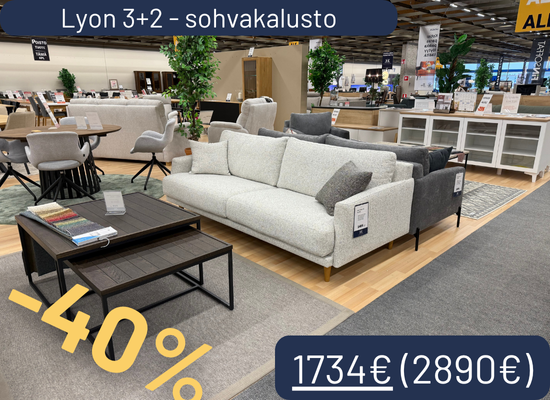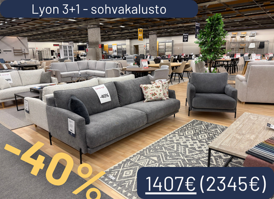Täältä löydät myymälämme mallipoistoja huippuedulliseen hintaan! Outlet pitää sisällään sohvat, sängyt, lepotuolit, säilytysratkaisut, ruokailuryhmät, eli siis kaiken, mitä kotisi kalustamiseen tarvitset. Kysy lisätiedot myymälästä. Täältä löydät myymälän ja myyjiemme yhteystiedot.